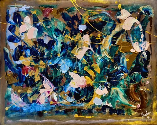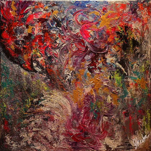 A lyrical piece that has movement, rhythm and energy. It's what happens when you listen to your heartbeat. The brush moves to its rhythm and colors begin to dance. Call it Salsa for the soul. Or Mambo for the mind.